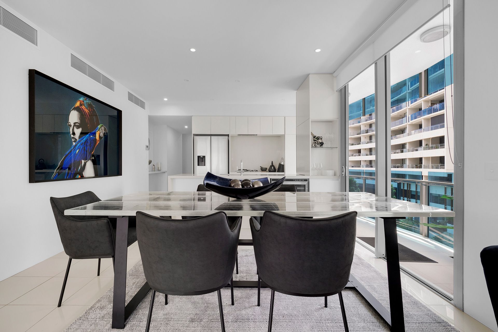 This apartment boasts open plan living with lavishly high ceilings, three generous bedrooms, two elegant bathrooms and a separate laundry. Connecting seamlessly to the designer kitchen and the spacious lounge/dining, the interiors open effortlessly onto the enviable balcony where you can relax and revel in the sweeping panoramas which form the ultimate backdrop for entertaining. Luxury is on an unrivaled scale with the property enjoying ample natural light. The master bedroom hits all the right notes with large shower showcasing matt black tapware complimented by polished stone and floor-to-ceiling tiles.