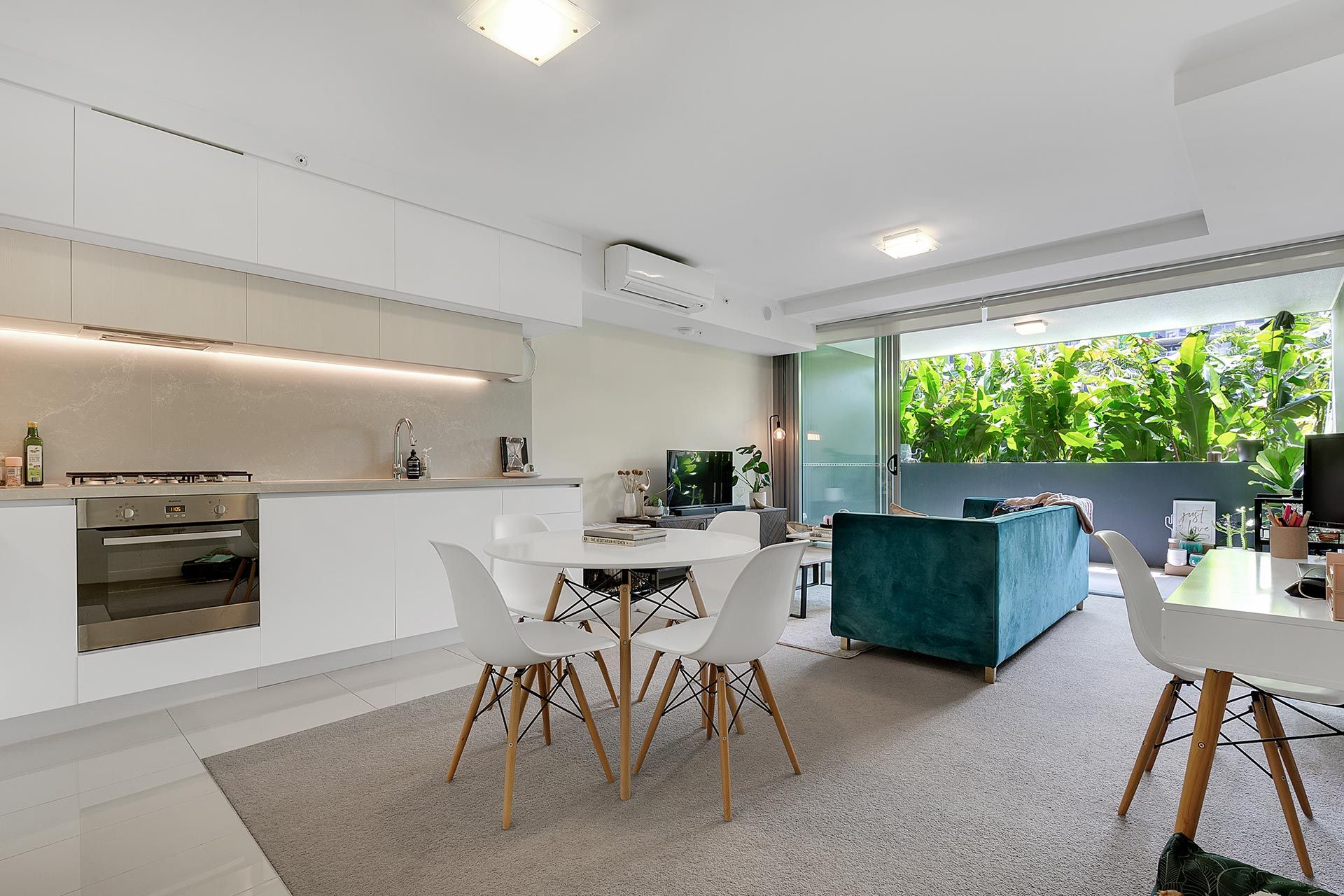 Exuding style and sophistication, this ultra-modern apartment superbly combines all the comforts you could want in a home. Entering through the front courtyard – perfect for providing extra space for plant lovers! – you will be immediately impressed by the spacious feel of this one bedroom unit. High ceilings and ample natural light ensures this unit feels bright and airy throughout.