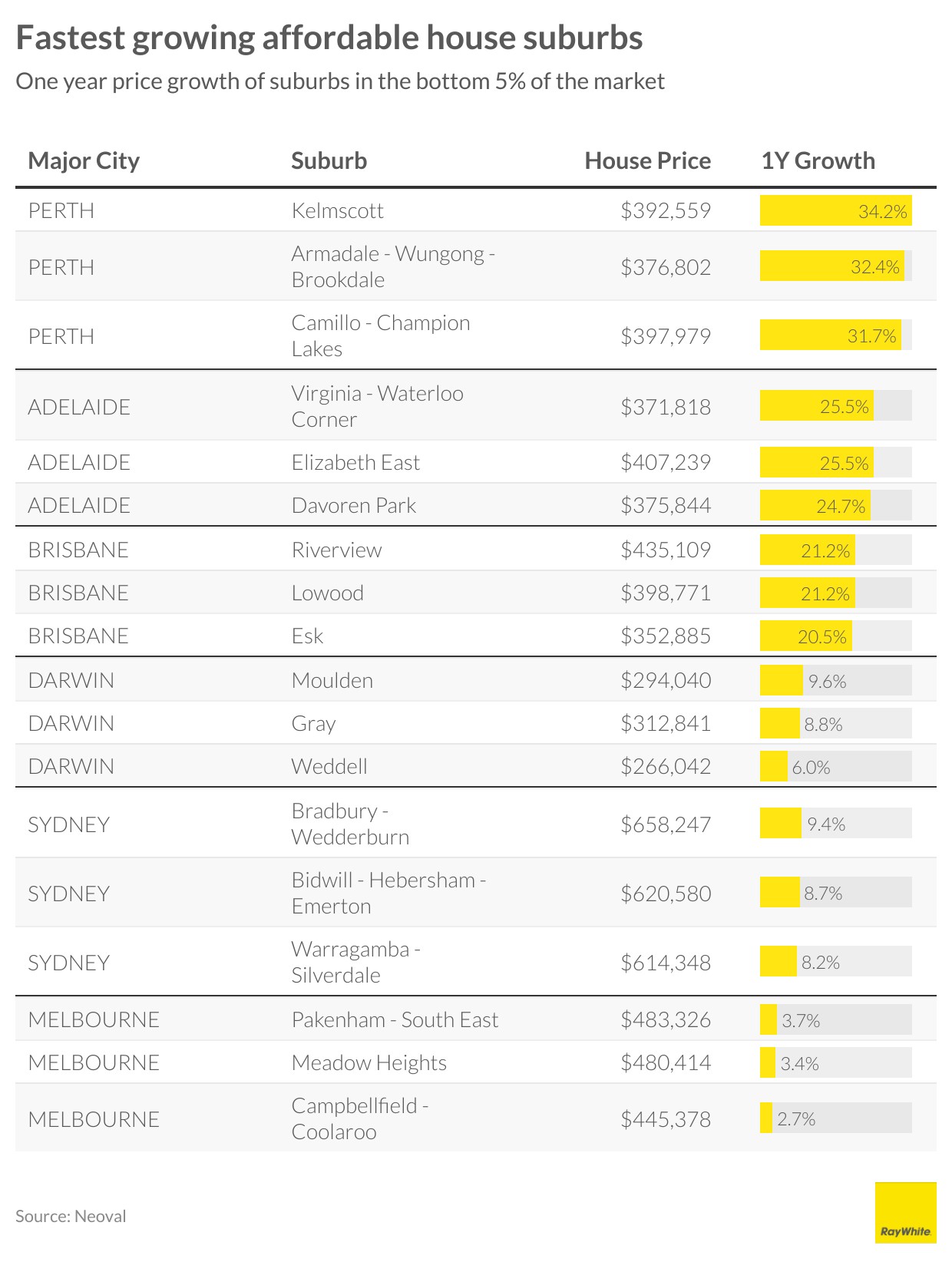 Perth is emerging as a hotspot for affordable house price growth, with suburbs like Kelmscott recording impressive gains of over 34% in the past year. Even in relatively flat markets like Darwin, certain areas are bucking the trend. Weddell, for instance, has seen a 6% increase in house prices, making it the cheapest fast-growing suburb for houses nationwide.