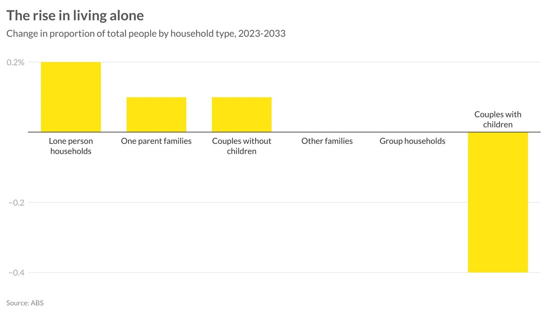 Living alone was one of the main drivers of the rental crisis and is a major demographic trend that directly impacts the types of homes that are built, as well as the number. More people are living alone, either by choice or circumstance and this is set to become a driving force of household change.
