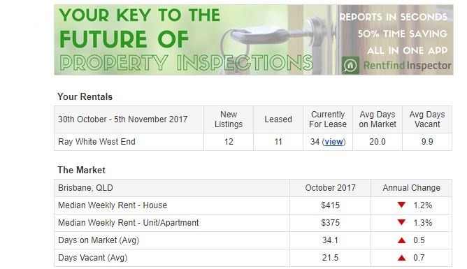 In a soft rental market, Ray White West End has continually done what it does best and ensured we retain a low vacancy rate for all our clients and establish long-term tenants for their investments. We have rented a total of 60 properties in September & October 2017, at an average of over 7 per week!