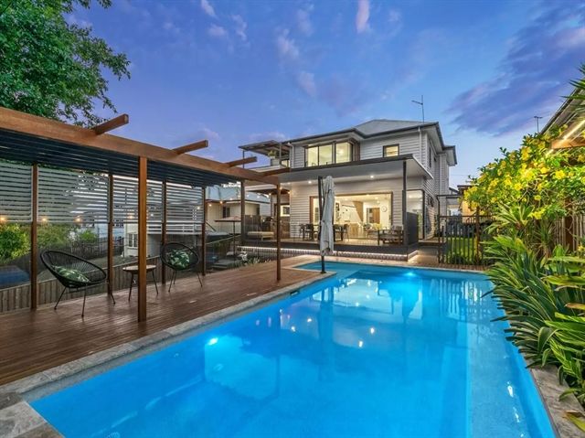 The architect designed five-bedroom home at 84 Frasers Rd (above) is within walking distance of Marist College Ashgrove and Oakleigh State School.