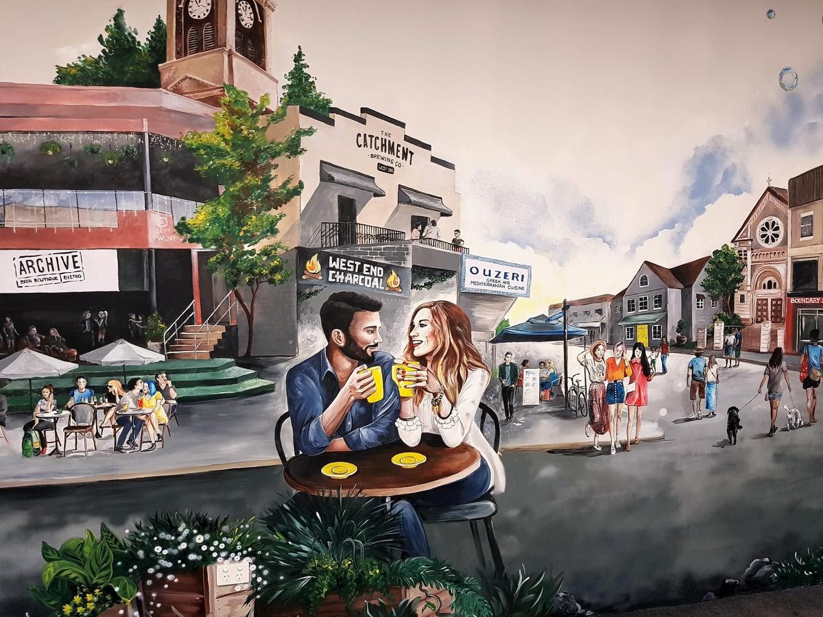 It was then that he decided to commission a local artist to paint a mural on the wall, to depict the eclectic Brisbane neighbourhood.