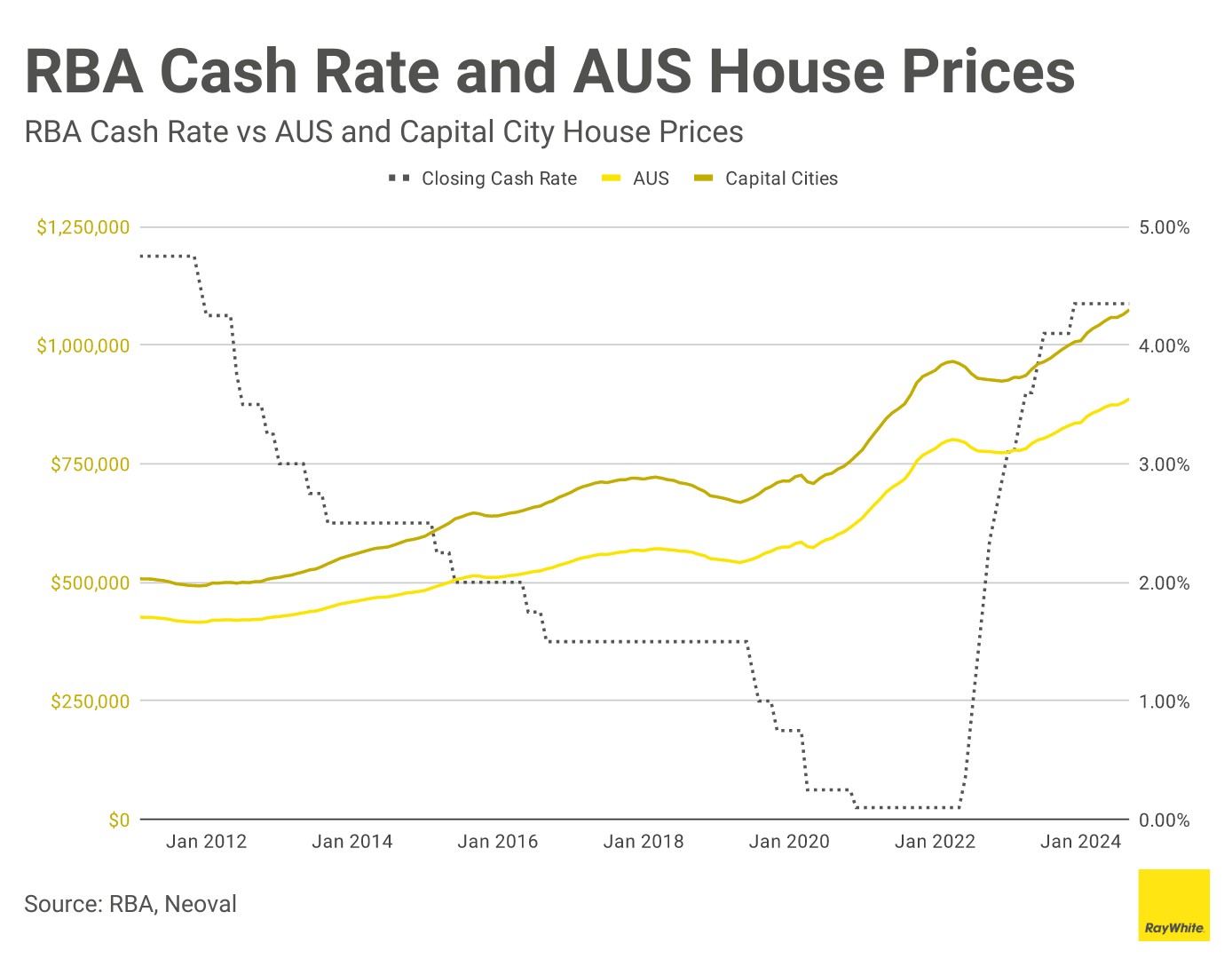 With inflation now edging towards three per cent and markets are now pricing in potentially four rate cuts next year, it is possible that we will see a rate cut before the end of the year. With Australian house prices remaining highly divergent between red hot Perth and Brisbane and slowing Melbourne and Sydney, what would be the impact on pricing of a cut?